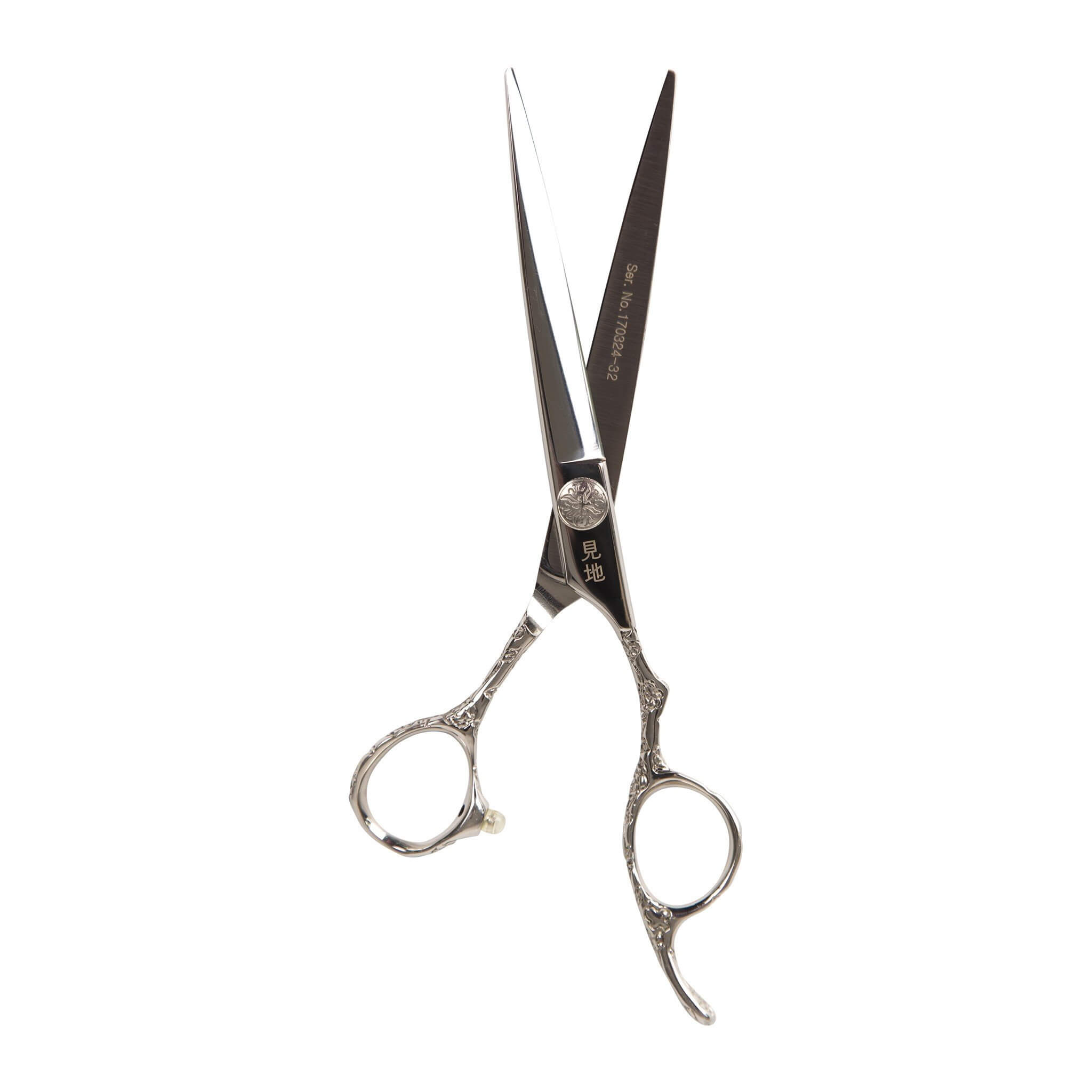 Kenchi Blade Kotaro professional scissor is designed and developed to incredibly high standards. One of our most popular selling scissors with hairdressers and barbers. Vintage engraved ergonomic offset handle with a fixed finger rest for comfort and control. Adjustable durable tension system. Premium rubber stopper. 440C Japanese 3D convex edge scissor.