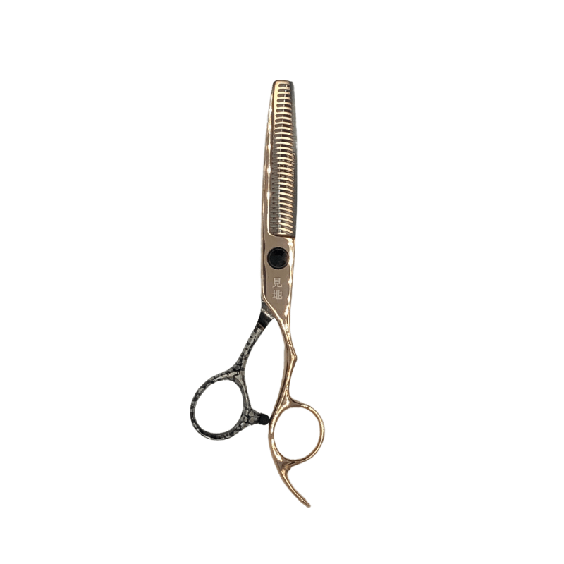 Kenchi Blade Hyo hairdressing and barbering scissor. Japanese 440c forged steel blade with a 3D convex edge.